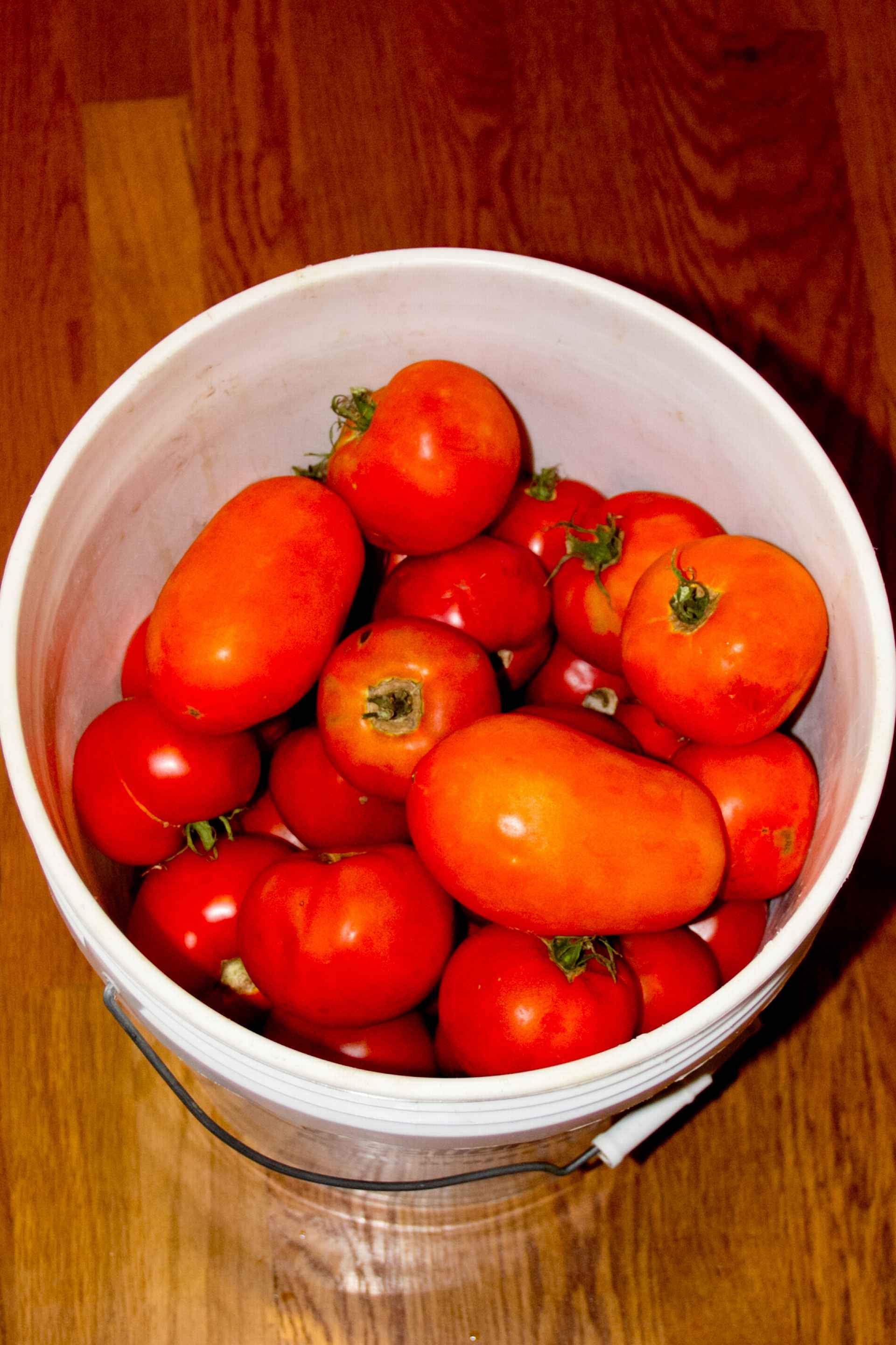 Remember all those tomatoes you planted a few months ago? Well, it’s time to do something with them! There are actually a lot of options when it comes to what to do with tomatoes, other than just canning or freezing them plain. My favorite? Homemade tomato sauce. Tomato sauce is a staple in our house. It’s great for Chicken Parmesan, spaghetti, pizza, bread sticks… well, you get the idea. And homemade is sooooo much better than store bought. And you know exactly what went into making it (and there aren’t any ingredients you can’t pronounce)! The best thing is that it isn’t that hard to make – although it is a little time consuming.