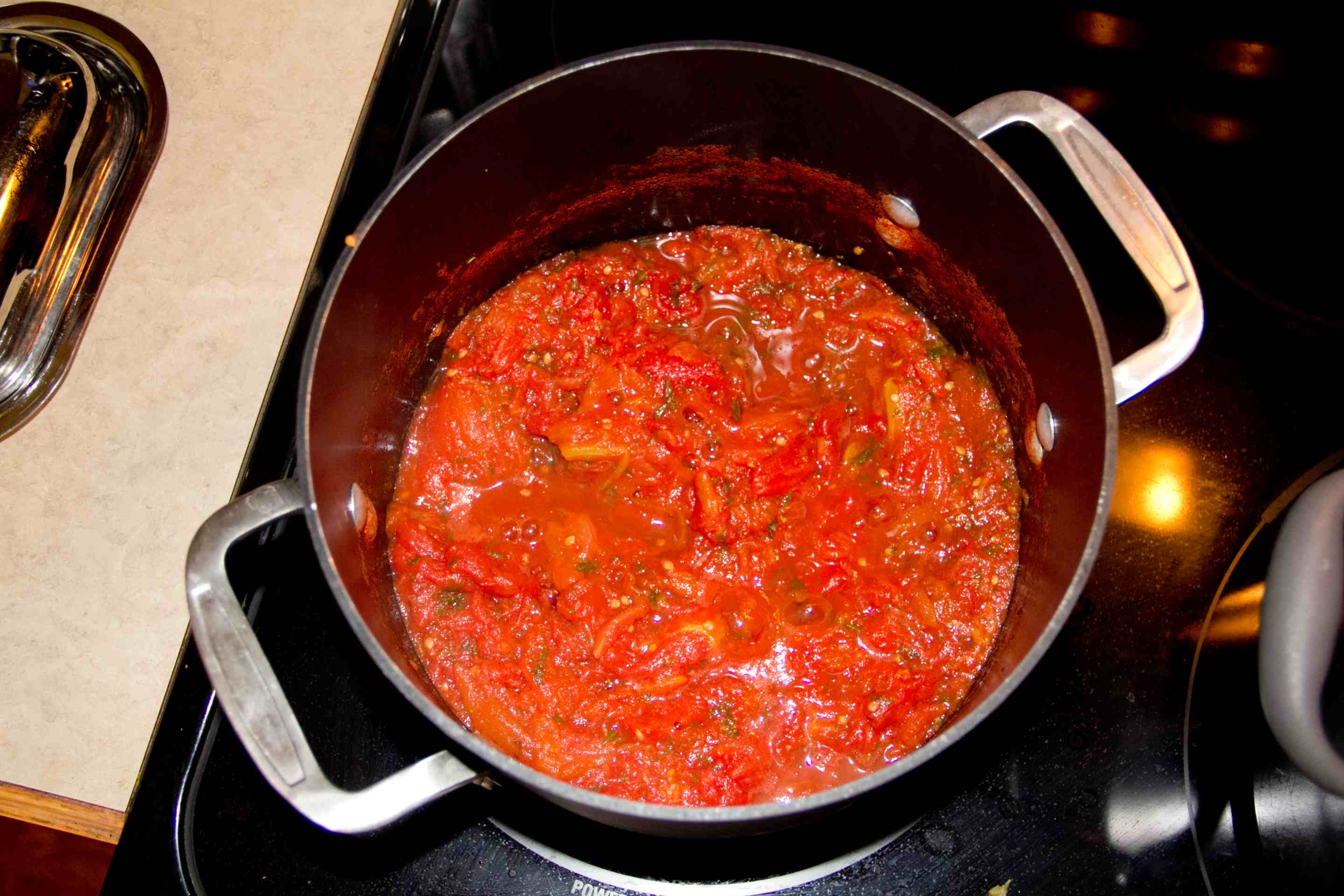 Some people like a chunky texture to their tomato sauce. If that’s your preference, you’re done! I prefer a smoother texture. You can put the sauce in a blender and blend until smooth, or you can use an immersion blender (my favorite small kitchen appliance).