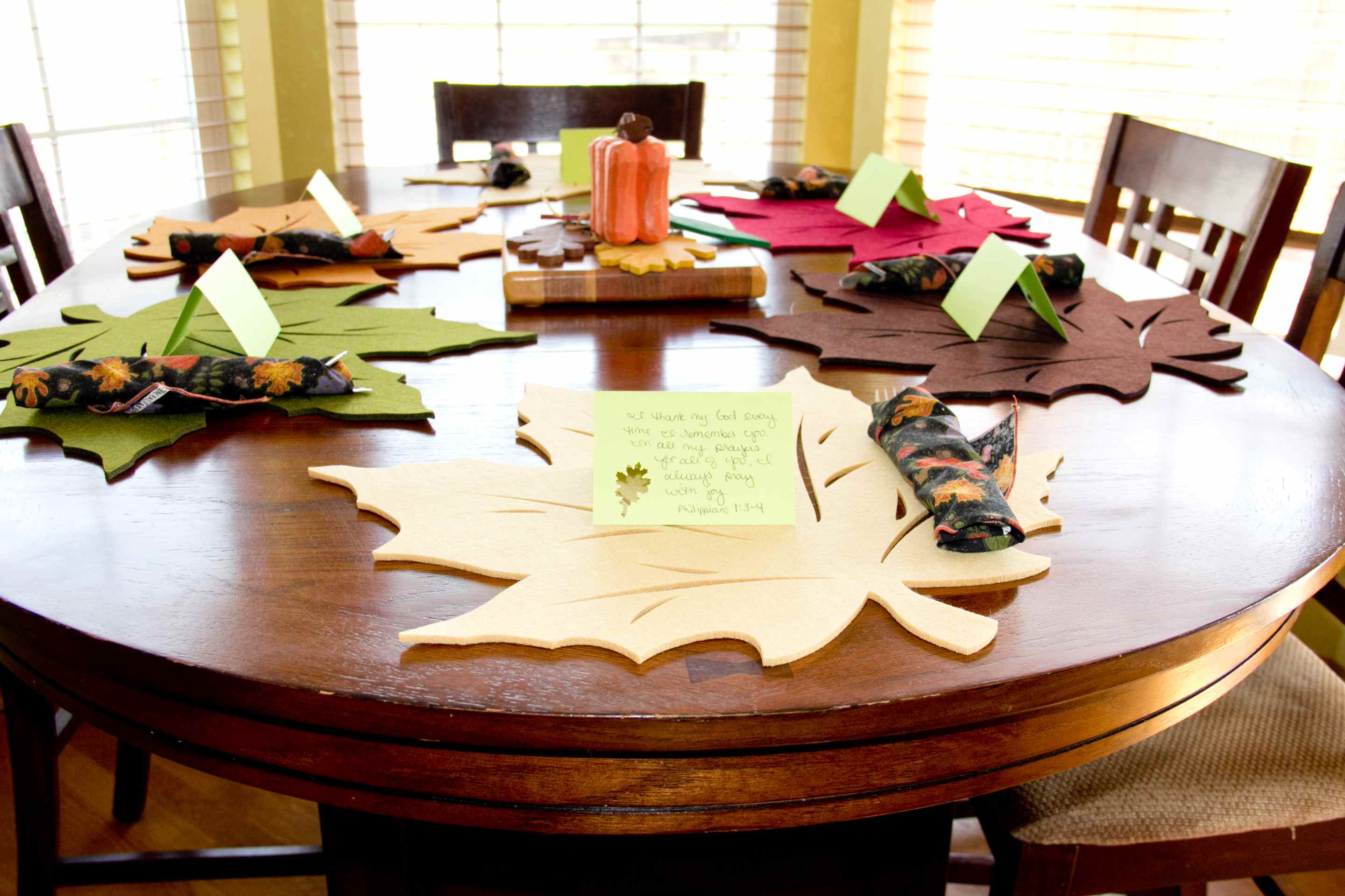 A verse about Thanksgiving at each place setting.