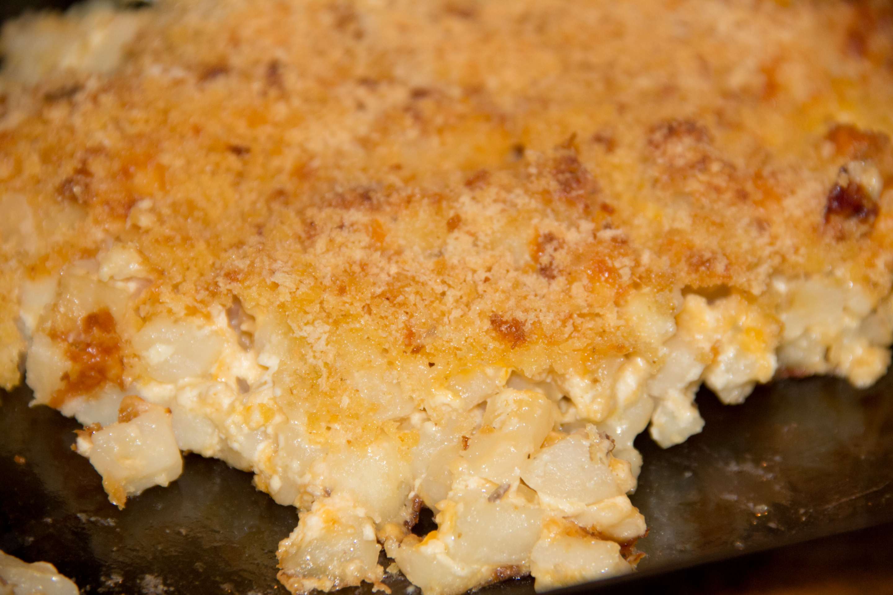 Combine all ingredients except crumbs in a large bowl.  Mix well.  Spread in 9×13 pan and top with bread crumbs.  Bake at 350 degrees for one hour.